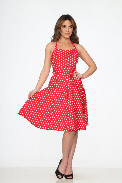 Robe dos nu à pois rouges et blancs