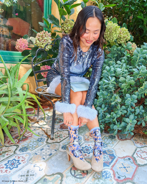 Préparez-vous à hanter votre garde-robe (de la manière la plus adorable qui soit) avec les chaussettes transparentes Casper et Arbres ! Une collaboration envoûtante entre Sock Candy et Casper le gentil fantôme ! Ces chaussettes vaporeuses mettent en scène Casper lui-même flottant joyeusement parmi des arbres bleus et noirs enchantés qui se détachent sur un fond transparent. Des touches de bleu lavande au talon, à la pointe et au bord-côte ajoutent une finition pastel onirique. Que vous vous déguisiez pour Halloween ou que vous souhaitiez simplement une touche de magie à votre style quotidien, ces chaussettes apporteront une note à la fois mystérieuse et chic à votre look. Taille unique. Pointures femme US 5,5 à 10.