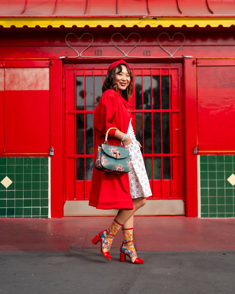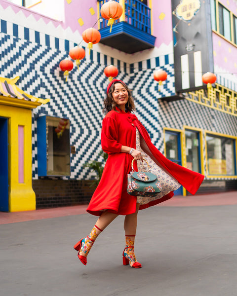 Célébrez le Nouvel An lunaire 2025 avec notre chaussette transparente festive « Année du Serpent ». Deux serpents jaunes aux motifs floraux rouges et turquoise s’entrelacent pour former un cœur abstrait, entourés de branches turquoise et de grandes fleurs. Cette chaussette est aussi ravissante de profil que de face, pour un effet spectaculaire garanti. Portez-la avec des talons rouges pour un look parfait pour le Nouvel An lunaire.