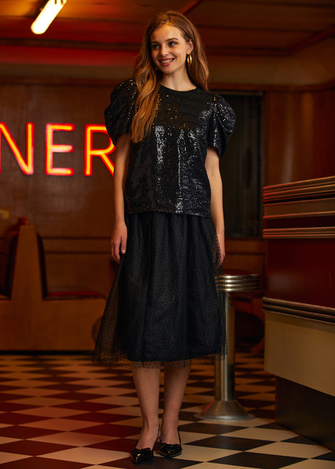 Célébrez les fêtes avec style grâce au pull à manches bouffantes Festive Frolic de notre marque ModCloth. Son noir profond et ses manches bouffantes audacieuses rendent hommage à l’élégance classique et à la magie des fêtes. Ce haut se marie aussi bien avec des jupes qu’avec des pantalons, offrant une pièce polyvalente à la fois confortable et sophistiquée. Que vous assistiez à une soirée glamour ou que vous profitiez de douces soirées d’hiver, ce vêtement incarne l’essence même de la magie des fêtes.