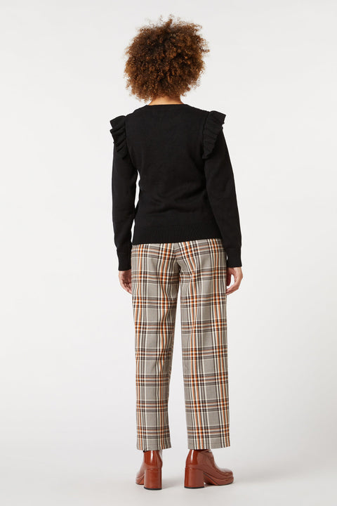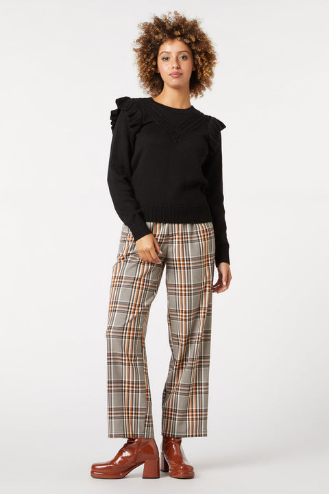 Enveloppez-vous de douceur dans le pull à épaules volantées de Princess Highway, où la douceur rencontre la chaleur dans une symphonie de style. Ce charmant pull, disponible en noir classique, présente un ravissant détail de volants qui cascade sur les épaules, apportant une touche ludique à ce classique de l’hiver. La pièce maîtresse, un motif en V à torsades, se déploie sur le devant, créant un effet visuel à la fois subtil et captivant. Avec ses bords-côtes à l’ourlet, aux poignets et au col, ce pull épouse parfaitement les formes, offrant une silhouette flatteuse qui vous protège du froid. Confectionné dans un doux mélange d’acrylique et de coton, il est l’allié idéal pour affronter les journées froides, vous assurant chaleur et style. Que vous soyez assise dans un charmant café, en train de flâner dans une librairie ou de profiter d’une promenade hivernale, ce pull s’accorde facilement avec votre jean préféré ou une jupe fluide, ce qui en fait une pièce polyvalente et pleine de personnalité pour votre garde-robe.