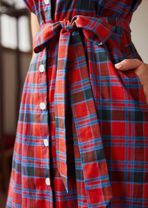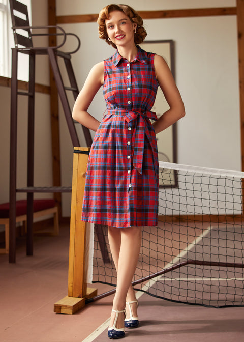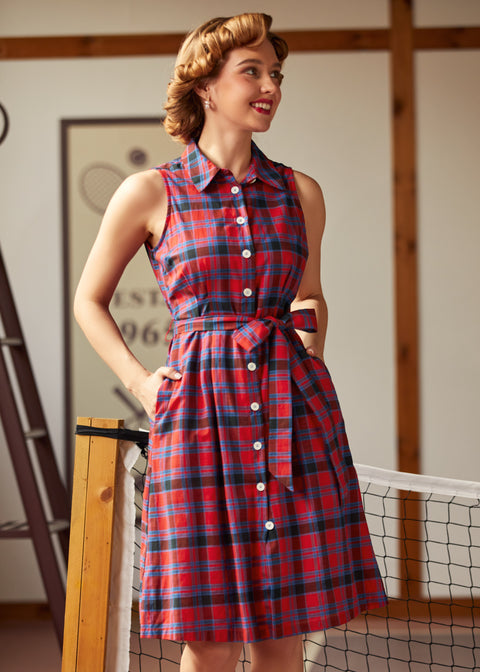 La robe « Can’t Slow My Roll » de notre marque ModCloth insuffle une énergie vintage impeccable à une allure preppy et sportive intemporelle. Conçue en coton respirant avec une doublure douce en viscose, cette robe-chemise sans manches présente un col soigné, une fermeture boutonnée sur le devant, des poches (génial !) et une ceinture à nouer à la taille pour ajuster votre silhouette. Son motif à carreaux rouges et bleus audacieux lui confère un style rétro, raffiné et décontracté, parfait pour toutes les occasions, des journées de travail décontractées aux escapades du week-end. Lavage en machine à froid, séchage à l’air libre. Extérieur : 100 % coton. Doublure : 100 % viscose. Longueur : 103 cm (S), 112 cm (3XL). Importée.