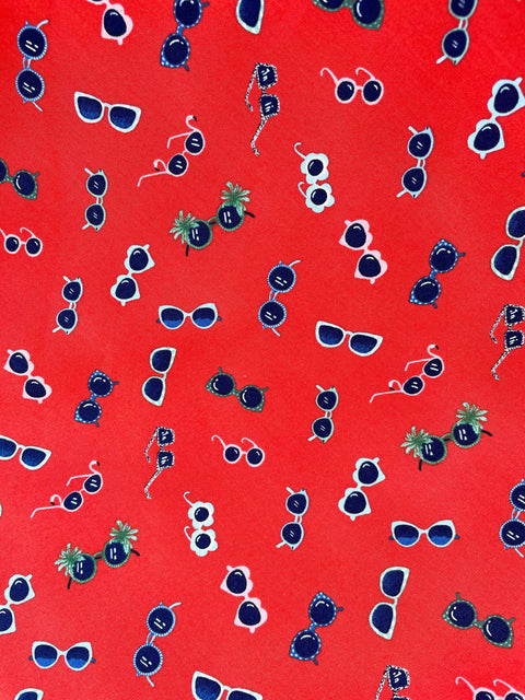 Une pièce de style vintage avec des détails modernes et amusants grâce à notre imprimé lunettes de soleil ludique. Confectionnée en 100 % coton, cette robe classique inspirée des années 1950 présente un col montant, une jupe longue avec des poches latérales invisibles et une fermeture éclair au dos.