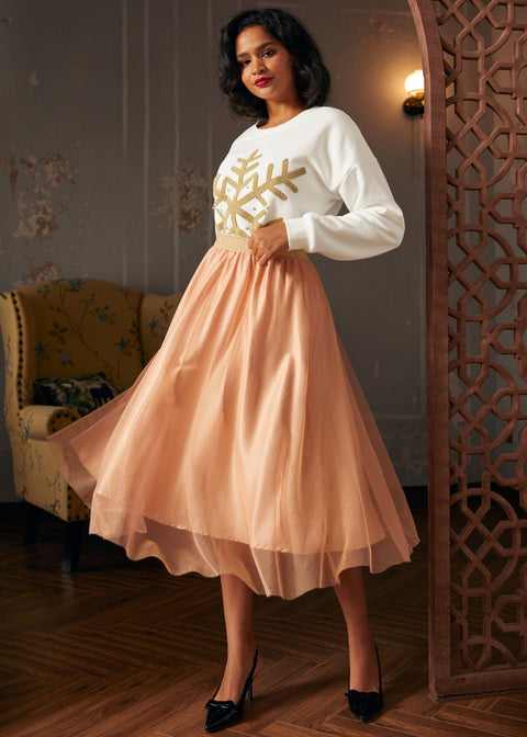 Enveloppez-vous dans la sérénité d’un style hivernal avec le sweat-shirt Winter’s Whisper Snowflake de notre marque ModCloth. Confectionné en soie couleur crème effet neige et orné de délicats flocons de neige, ce haut en maille incarne la beauté paisible d’un paysage hivernal. Que vous profitiez des festivités en plein air ou que vous restiez bien au chaud à l’intérieur, cette pièce est un hommage délicat à la douceur de l’hiver.