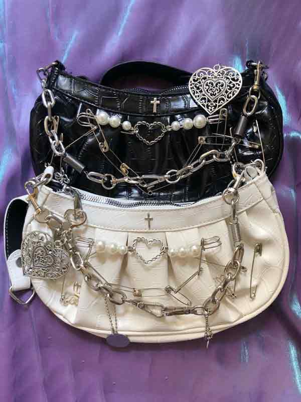 Detalles: Estos bolsos de hombro presentaban un diseño de paneles de cuero de Pu, tienen perla , cadena, alfileres como adornos, llenos de vibraciones vintage y Y2K.