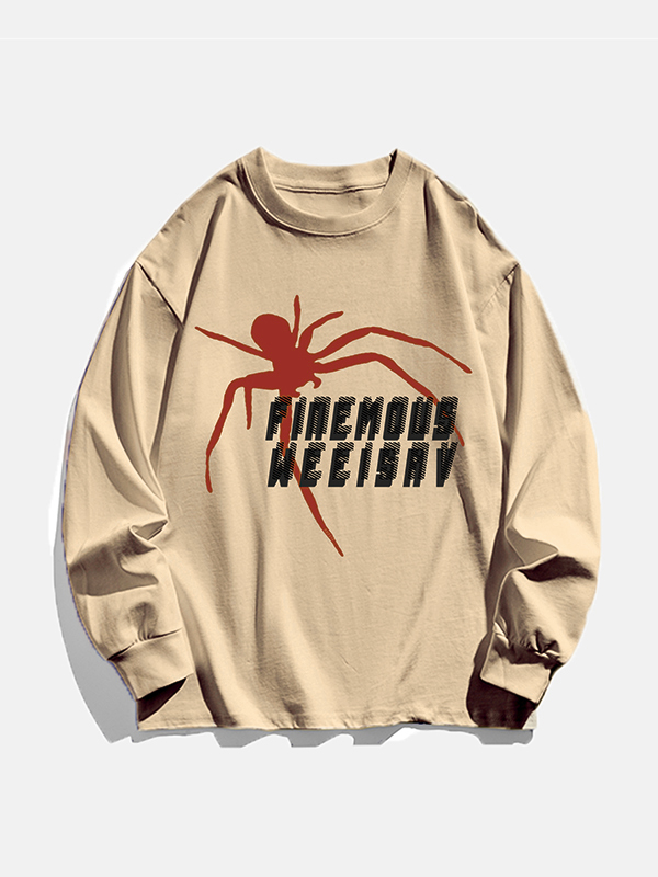 Camiseta de manga larga con estampado de araña y letras para hombre