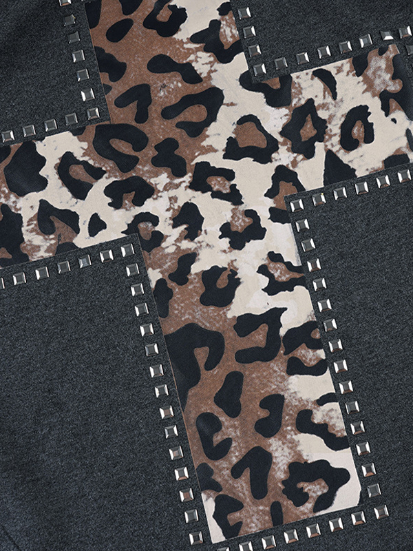 Sé el primero en valorar “Camiseta holgada con hombros descubiertos, estampado de leopardo y diamantes de imitación en color contrastante”