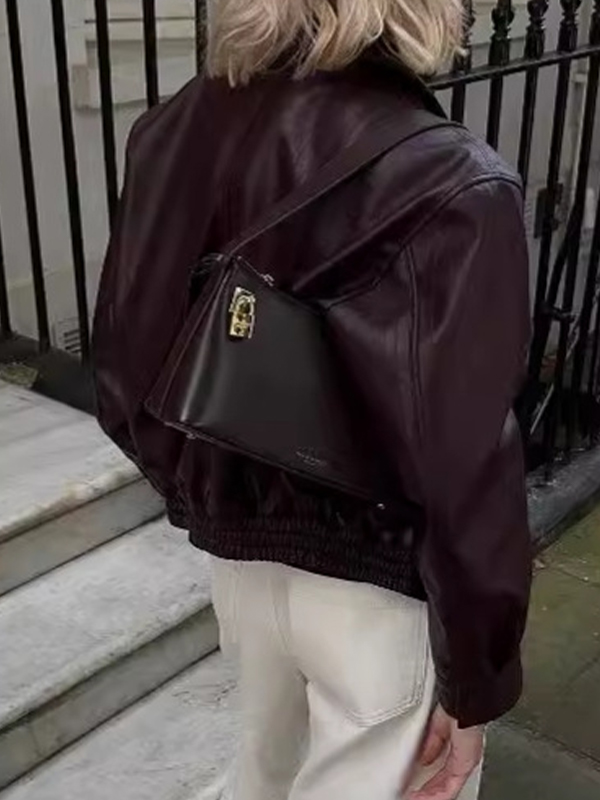 Chaqueta de moto de color liso con solapa llamativa