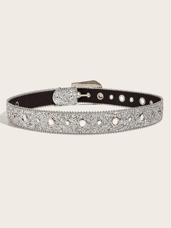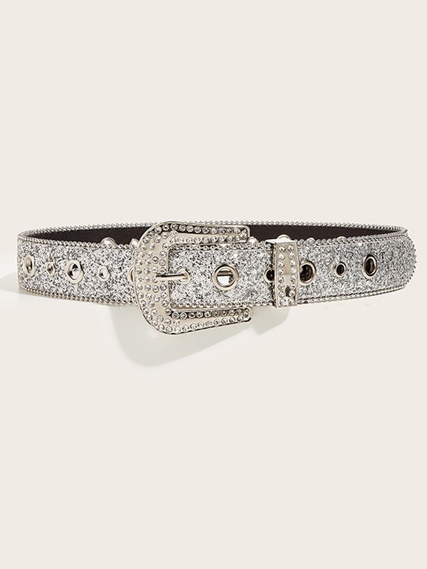 Cinturón con hebilla de lentejuelas adornada con diamantes de imitación