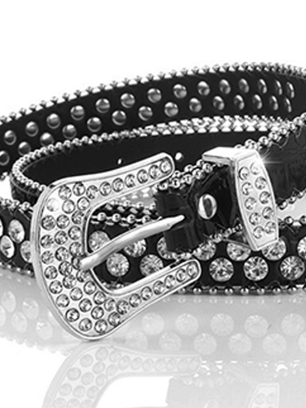 Cinturón con hebilla de piel sintética con diamantes de imitación dobles