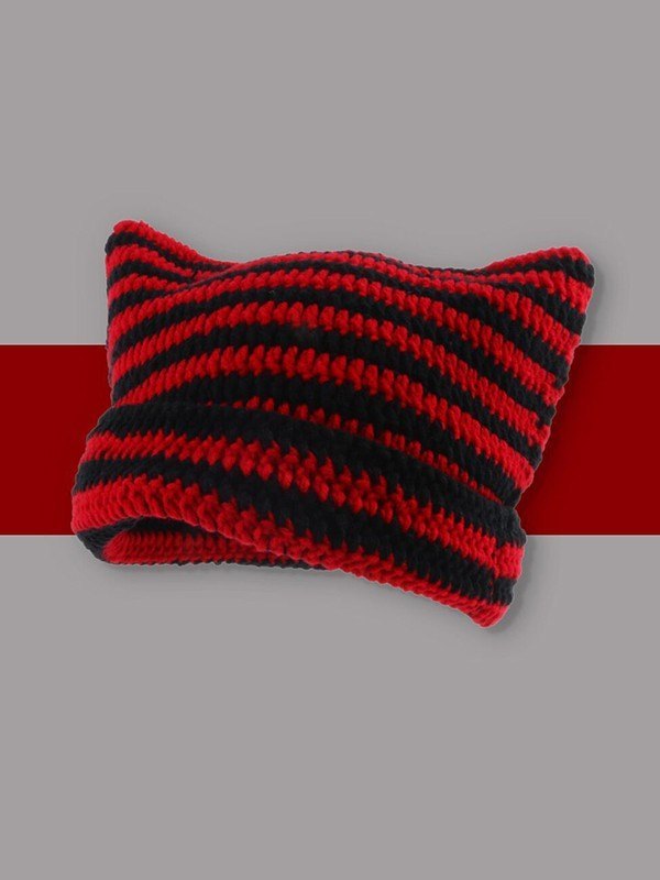Gorro Beanie con diseño de orejas a rayas en contraste