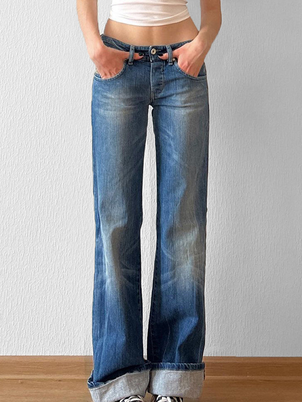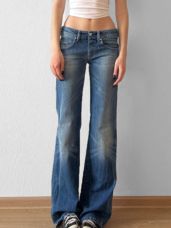 Jeans acampanados versátiles básicos de adelgazamiento de tiro bajo