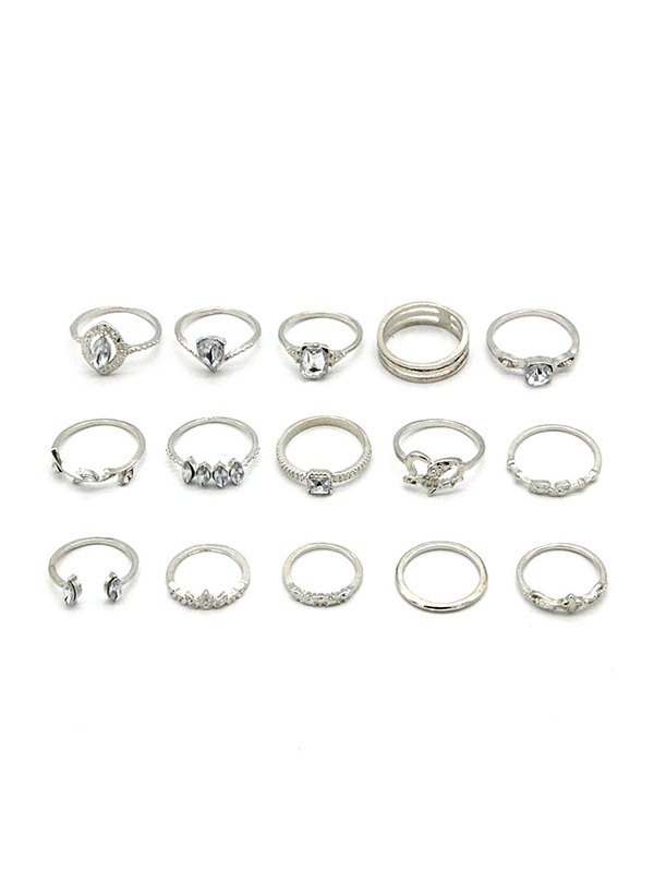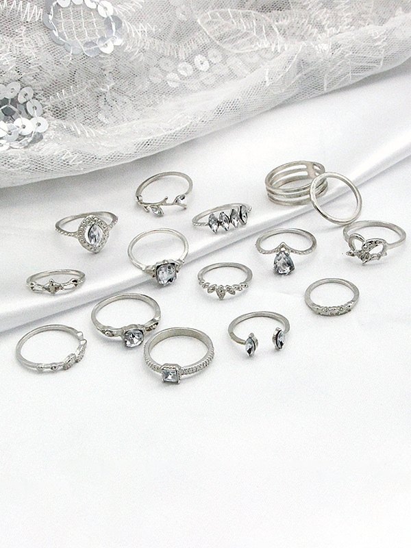 Juego de anillos de plata con diamantes de imitación de 15 piezas