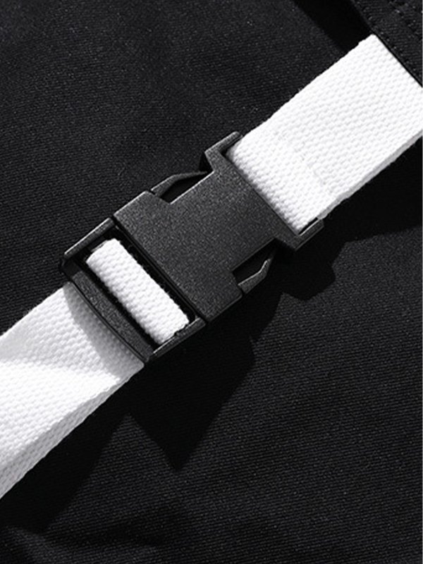 Descripción: Estos pantalones cargo casuales para hombre tienen un estilo de corte de pierna patinadora , se sienta en una cintura con cordón elástico, cuenta con bolsillos parcheados con correa con hebilla e impreso con patrones de letras en él.