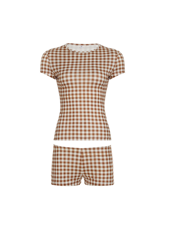 Traje de dos piezas adelgazante con escote redondo y hombros descubiertos